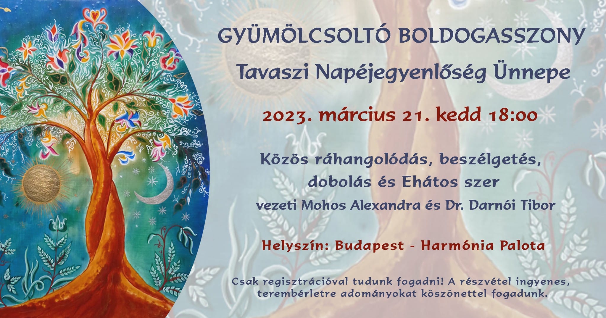 Szeretettel hívunk a Yotengrit Alapítvány Tavaszi Napéjegyenlőség Ünnepére 2023. március 21-én kedd este 18:00-tól a Harmónia Palotába! Az esti programot Székely Péter barátunk úti beszámolójával kezdjük, aki közösségünk egyik oszlopos tagja. Ezt követően a szertartásra közös dobolással és énekléssel hangolódunk. Az Ehátos szert Mohos Alexandra […]