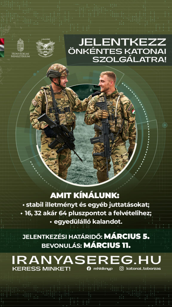 Felhívások - közleményekHírek Kevesebb, mint percOlvasási idő A Magyar Honvédség célzott toborzást indít Márciustól By admin 2024-02-29 FacebookTwitterPinterestWhatsApp TagsFelhívások - közleményekHírek Hírek, Események Hírek Meghívó rendkívüli képviselő-testületi ülés 2025-04-09 MEGHÍVÓNAGYKŐRÖS VÁROS ÖNKORMÁNYZAT KÉPVISELŐ-TESTÜLETÉNEK április 10-én (csütörtök) 15.00 órakortartandó rendkívüli... Hírek Meghívó Jogi, Gazdasági és Közbeszerzési Bizottság ülésére 2025-04-09 M E G H Í V ÓNagykőrös Város ÖnkormányzatJOGI,... Hírek Meghívó együttes bizottsági ülésre 2025-04-09 M E G H Í V ÓNagykőrös Város ÖnkormányzatEMBERI... Hírek Meghívó Emberi Erőforrások Bizottság ülése 2025-04-09 MEGHÍVÓNagykőrös Város ÖnkormányzatEMBERI ERŐFORRÁSOK BIZOTTSÁGÁNAK április 10-én (csütörtök),13.45 órakor tartandó... Felhívások - közlemények Tájékoztatás szünidei gyermekétkeztetésről 2025-04-03 A személyes gondoskodást nyújtó gyermekjóléti alapellátások és gyermekvédelmi szakellátások... Kiemelt Hírek Meghívó rendkívüli képviselő-testületi ülés MEGHÍVÓNAGYKŐRÖS VÁROS ÖNKORMÁNYZAT KÉPVISELŐ-TESTÜLETÉNEK április 10-én (csütörtök) 15.00 órakortartandó rendkívüli... Hírek Meghívó Jogi, Gazdasági és Közbeszerzési Bizottság ülésére M E G H Í V ÓNagykőrös Város ÖnkormányzatJOGI,... Hírek Meghívó együttes bizottsági ülésre M E G H Í V ÓNagykőrös Város ÖnkormányzatEMBERI... Hírek Meghívó Emberi Erőforrások Bizottság ülése MEGHÍVÓNagykőrös Város ÖnkormányzatEMBERI ERŐFORRÁSOK BIZOTTSÁGÁNAK április 10-én (csütörtök),13.45 órakor tartandó... Felhívások - közlemények Tájékoztatás szünidei gyermekétkeztetésről A személyes gondoskodást nyújtó gyermekjóléti alapellátások és gyermekvédelmi szakellátások... Pályázatok Pályázati felhívás – „Jó tanuló – Jó sportoló” PÁLYÁZATI FELHÍVÁS Nagykőrös Város Önkormányzat Képviselő-testülete „JÓ TANULÓ – JÓ SPORTOLÓ” pályázatot... Hírek A 2025. évi lakossági fásítási akció felhívása Nagykőrös város belterületén fásítás céljából igényt nyújthat be facsemetére... Hírek 2025. évi lakossági járdaépítés pályázati felhívása Nagykőrös Város Önkormányzata Képviselő-testülete a 2025. évi költségvetésében 8.000.000,-... Kapcsolódó bejegyzések Meghívó rendkívüli képviselő-testületi ülés Hírek 2025-04-09 Meghívó Jogi, Gazdasági és Közbeszerzési Bizottság ülésére Hírek 2025-04-09 Meghívó együttes bizottsági ülésre Hírek 2025-04-09 Meghívó Emberi Erőforrások Bizottság ülése Hírek 2025-04-09 Tájékoztatás szünidei gyermekétkeztetésről Felhívások - közlemények 2025-04-03 Népszerű kategóriák HírekFájlokÁllásajánlatokFelhívások - közleményekPályázatokVárosinformációVideóGaléria Előző cikkPályázati felhívás-HR ügyintézőKövetkező cikkVálasztópolgároknak